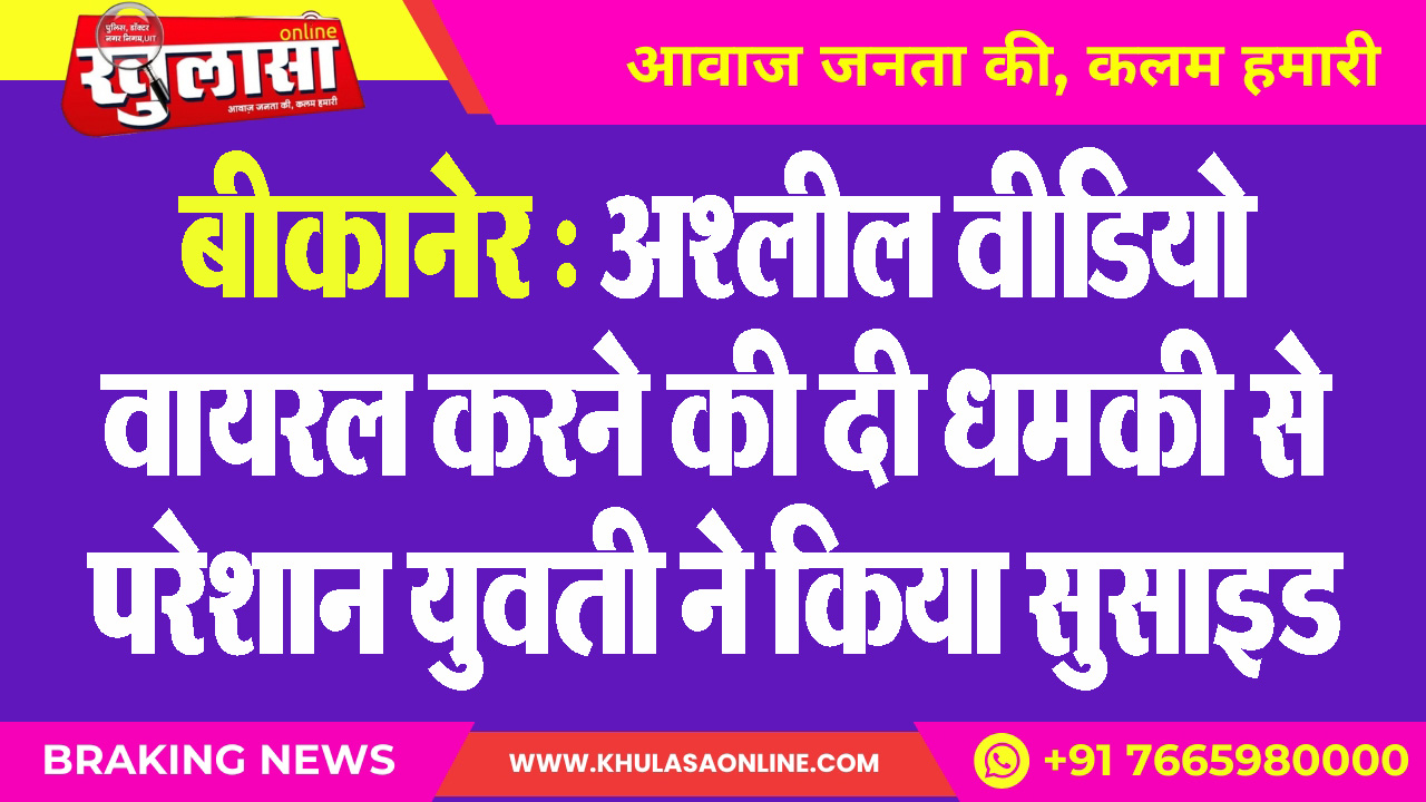 बीकानेर : अश्लील वीडियो वायरल करने की दी धमकी से परेशान युवती ने किया सुसाइड