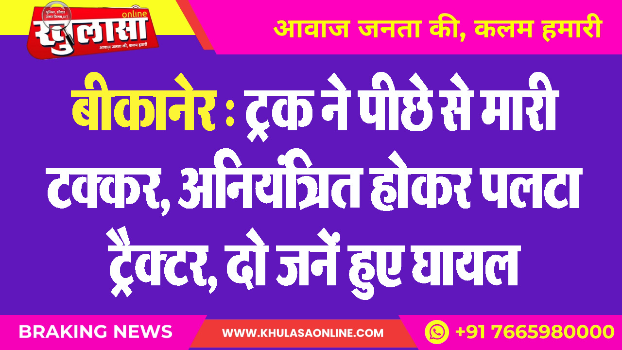 बीकानेर : ट्रक ने पीछे से मारी टक्कर, अनियंत्रित होकर पलटा ट्रैक्टर, दो जनें हुए घायल