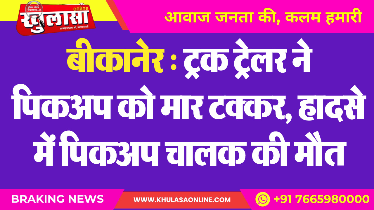 बीकानेर : ट्रक ट्रेलर ने पिकअप को मार टक्कर, हादसे में पिकअप चालक की मौत