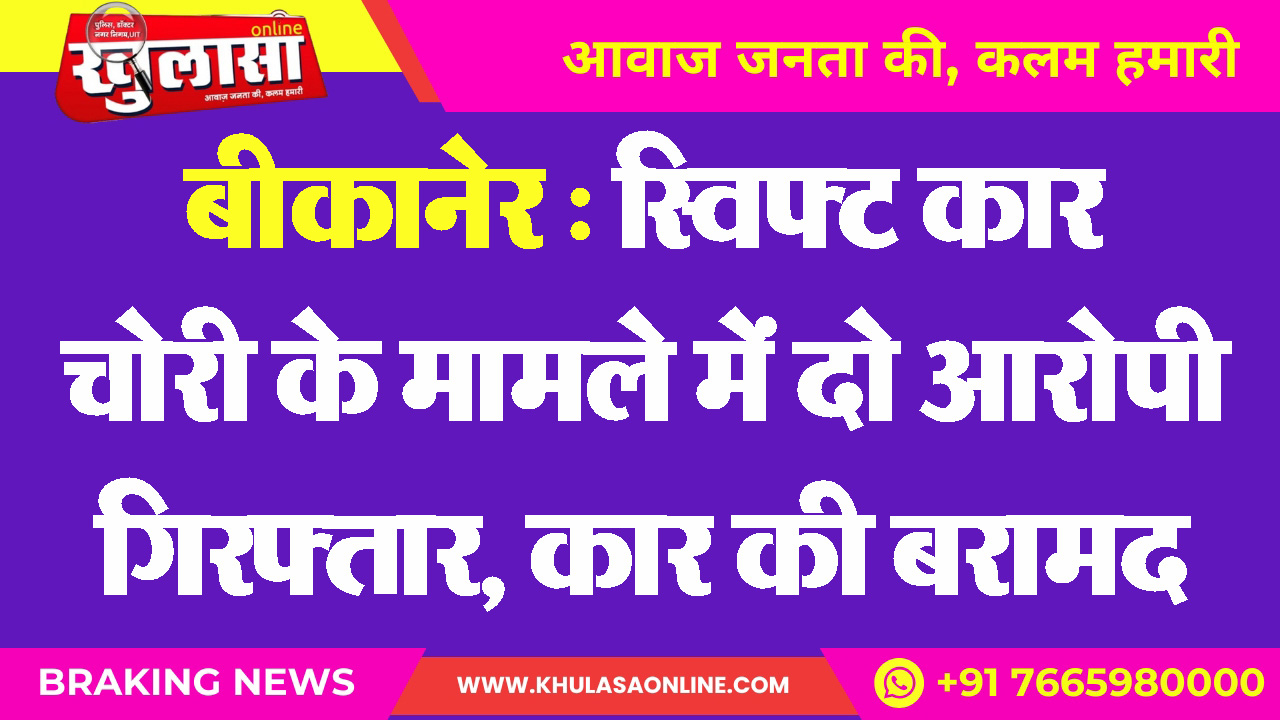 बीकानेर : स्विफ्ट कार चोरी के मामले में दो आरोपी गिरफ्तार, कार की बरामद