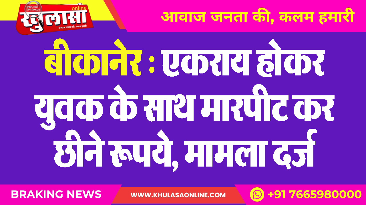 बीकानेर : एकराय होकर युवक के साथ मारपीट कर छीने रूपये, मामला दर्ज