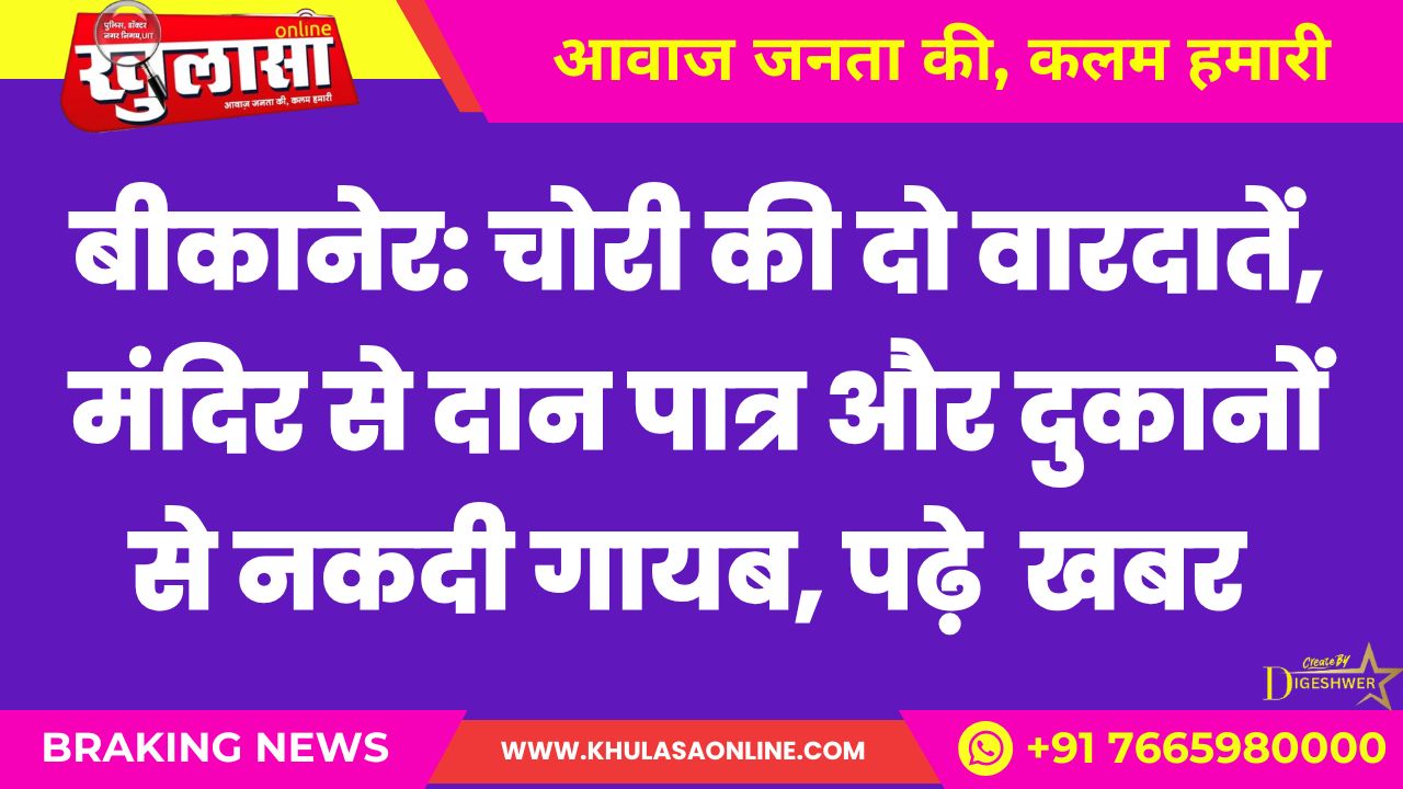 बीकानेर: चोरी की दो वारदातें, मंदिर से दान पात्र और दुकानों से नकदी गायब