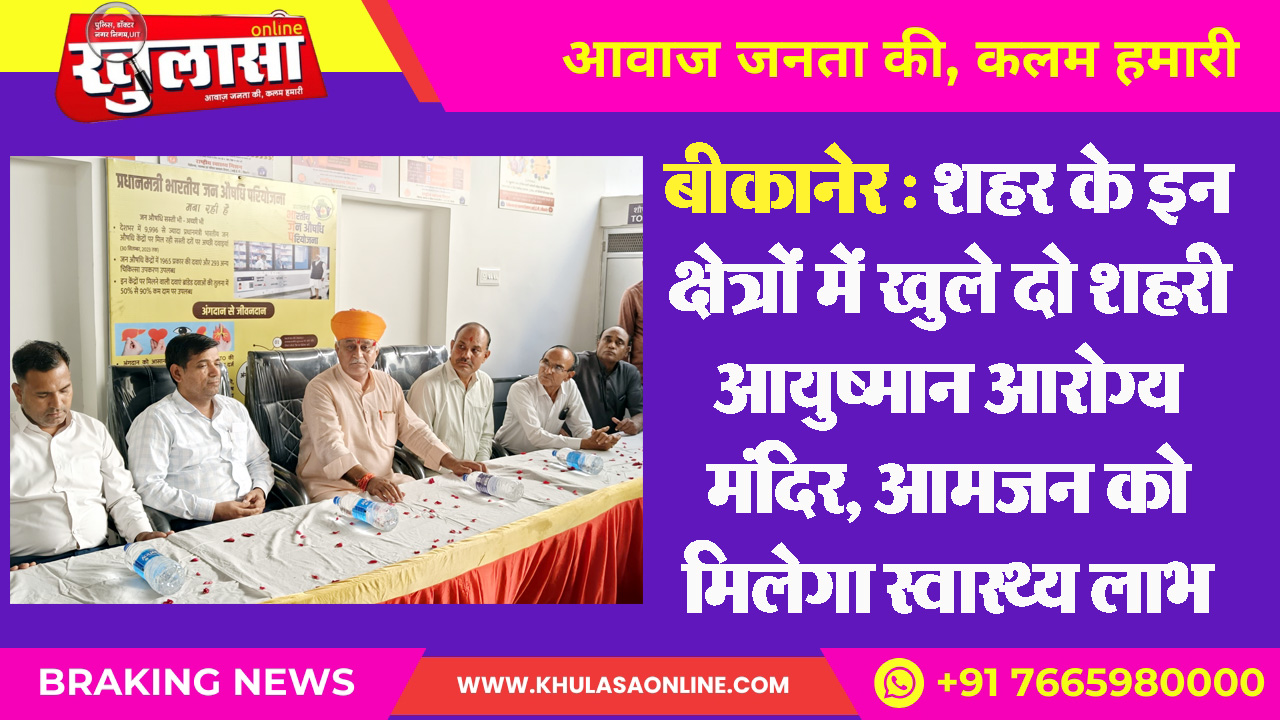 बीकानेर : शहर के इन क्षेत्रों में खुले दो शहरी आयुष्मान आरोग्य मंदिर, आमजन को मिलेगा स्वास्थ्य लाभ
