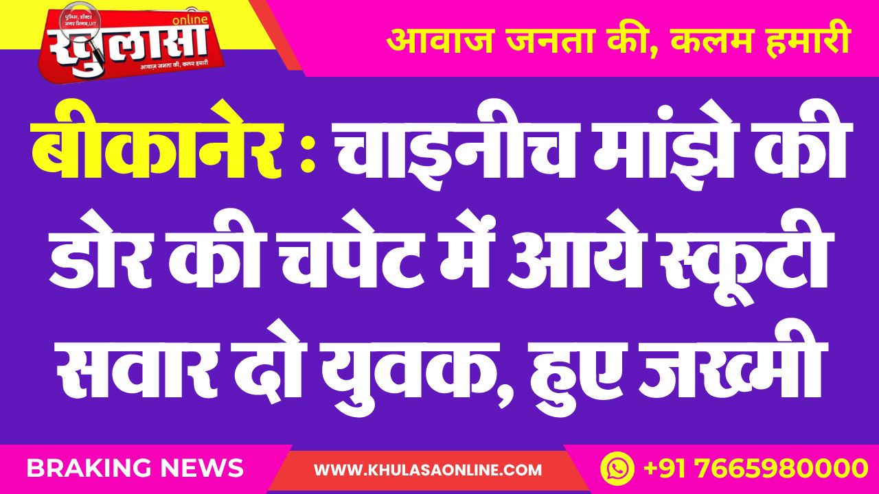 बीकानेर : चाइनीच मांझे की डोर की चपेट में आये स्कूटी सवार दो युवक, हुए जख्मी