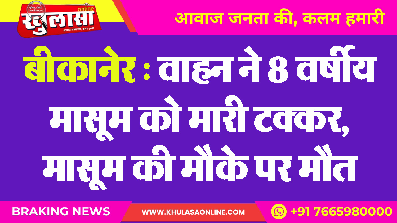बीकानेर : वाहन ने 8 वर्षीय मासूम को मारी टक्कर, मासूम की मौके पर मौत