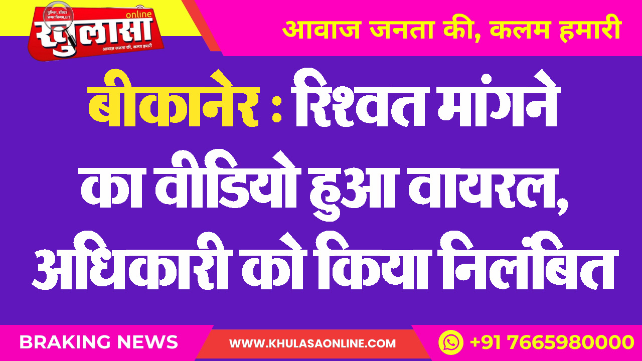 बीकानेर : रिश्वत मांगने का वीडियो हुआ वायरल, अधिकारी को किया निलंबित