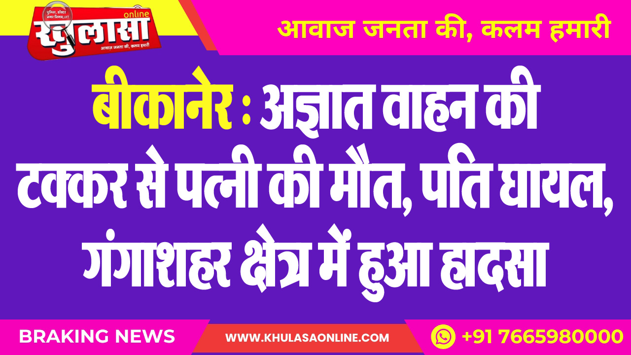 बीकानेर : अज्ञात वाहन की टक्कर से पत्नी की मौत, पति घायल, गंगाशहर क्षेत्र में हुआ हादसा