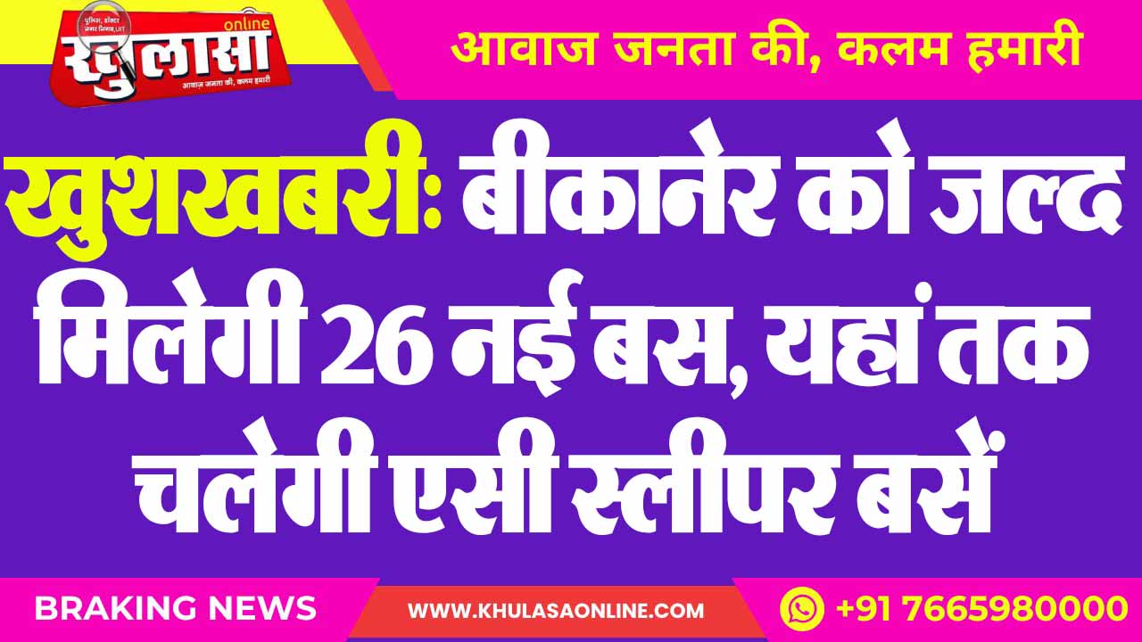 खुशखबरी: बीकानेर को जल्द मिलेगी 26 नई बस, यहां तक चलेगी एसी स्लीपर बसें