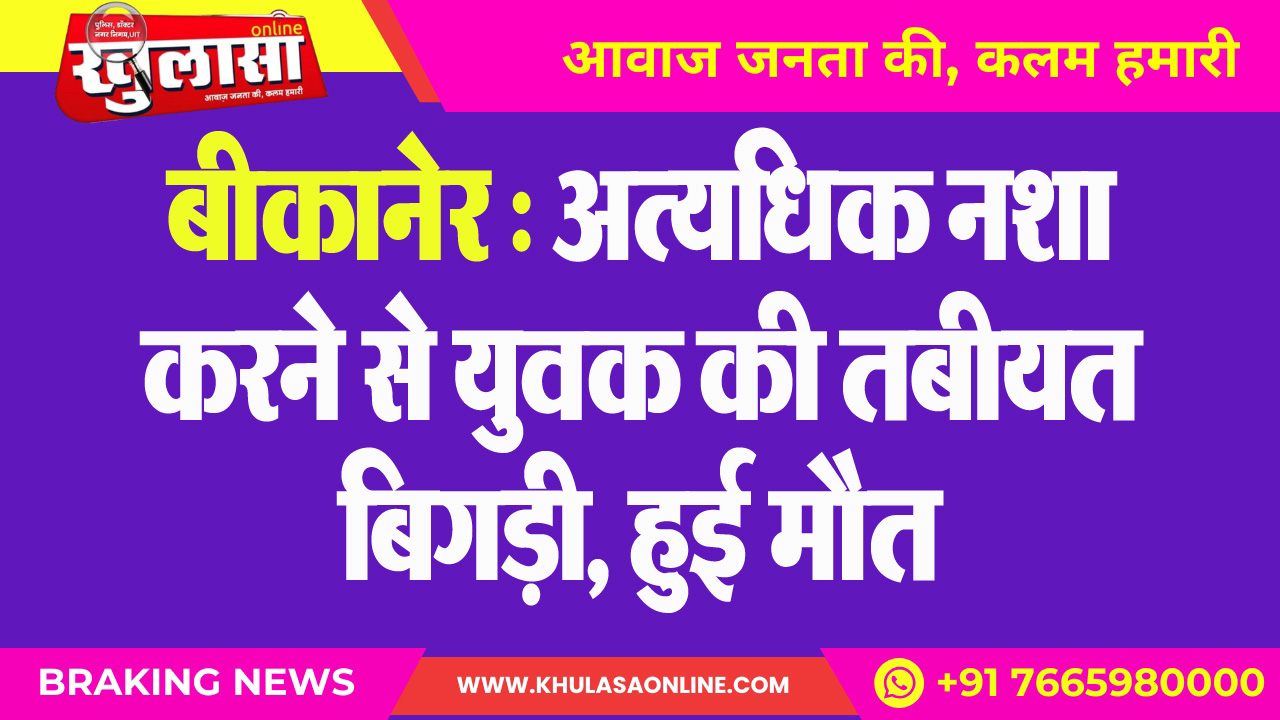 बीकानेर : अत्यधिक नशा करने से युवक की तबीयत बिगड़ी, हुई मौत
