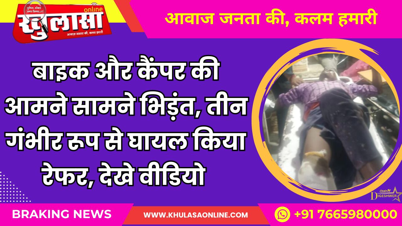 बाइक और कैंपर की आमने सामने भिड़ंत, तीन गंभीर रूप से घायल किया रेफर, देखे वीडियो