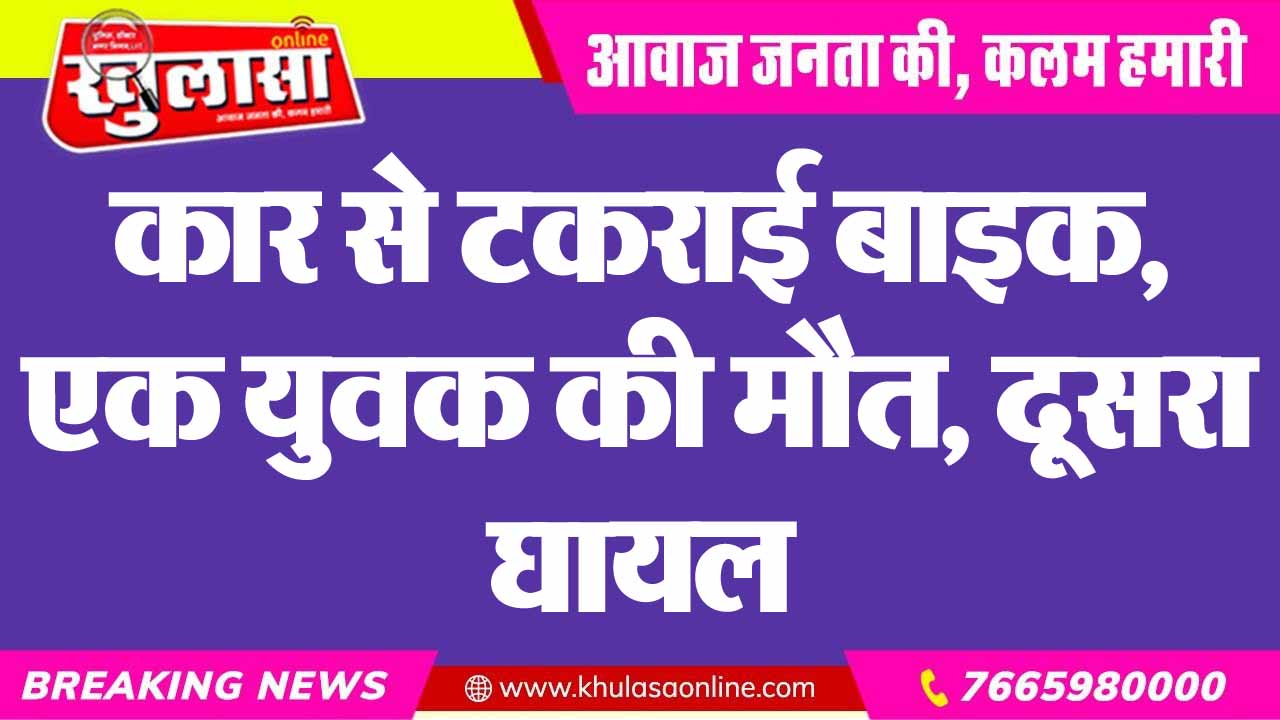 कार से टकराई बाइक, एक युवक की मौत, दूसरा घायल