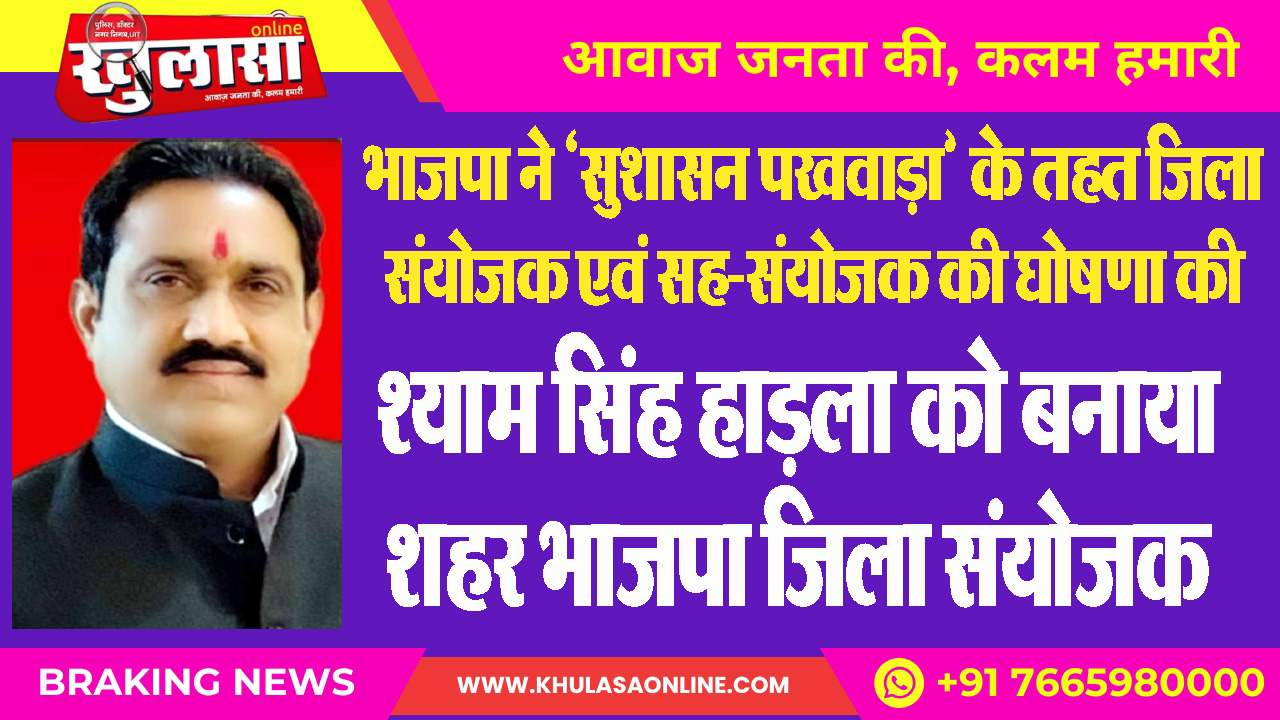 भाजपा ने ‘सुशासन पखवाड़ा’ के तहत जिला संयोजक एवं सह-संयोजक की घोषणा की