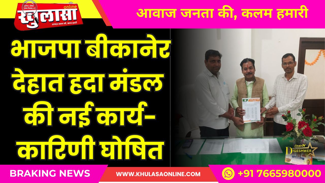 भाजपा बीकानेर देहात हदा मंडल की नई कार्यकारिणी घोषित