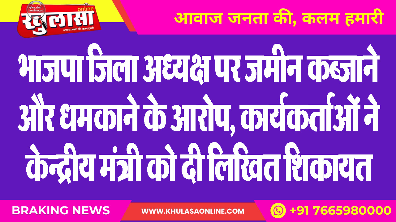 भाजपा जिला अध्यक्ष पर जमीन कब्जाने और धमकाने के आरोप, कार्यकर्ताओं ने केन्द्रीय मंत्री को दी लिखित शिकायत