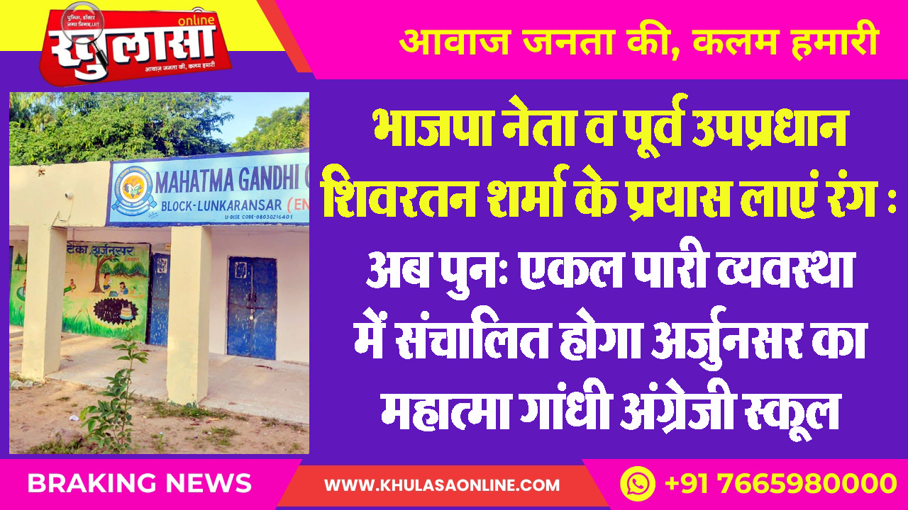 भाजपा नेता व पूर्व उपप्रधान शिवरतन शर्मा के प्रयास लाएं रंग : अब पुनः एकल पारी व्यवस्था में संचालित होगा अर्जुनसर का महात्मा गांधी अंग्रेजी स्कूल