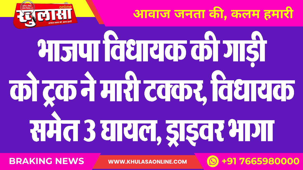 भाजपा विधायक की गाड़ी को ट्रक ने मारी टक्कर, विधायक समेत 3 घायल, ड्राइवर भागा