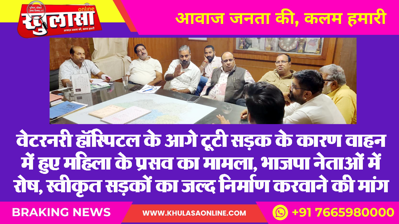 वेटरनरी हॉस्पिटल के आगे टूटी सडक़ के कारण वाहन में हुए महिला के प्रसव का मामला, भाजपा नेताओं में रोष, स्वीकृत सडक़ों का जल्द निर्माण करवाने की मांग