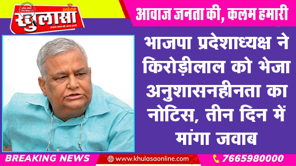 भाजपा प्रदेशाध्यक्ष ने किरोड़ीलाल को भेजा अनुशासनहीनता का नोटिस, तीन दिन में मांगा जवाब