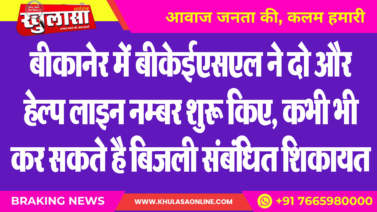 बीकानेर में बीकेईएसएल ने दो और हेल्प लाइन नम्बर शुरू किए, कभी भी कर सकते है बिजली संबंधित शिकायत