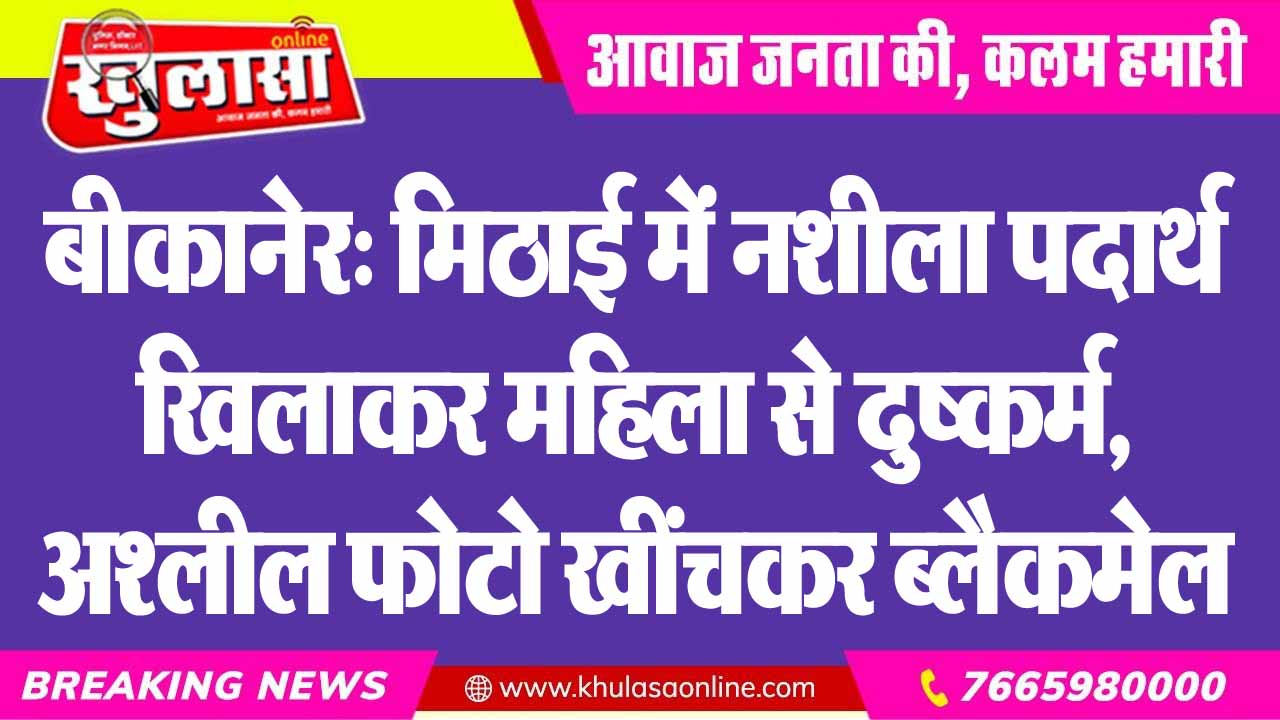 बीकानेर: मिठाई में नशीला पदार्थ खिलाकर महिला से दुष्कर्म, अश्लील फोटो खींचकर ब्लैकमेल