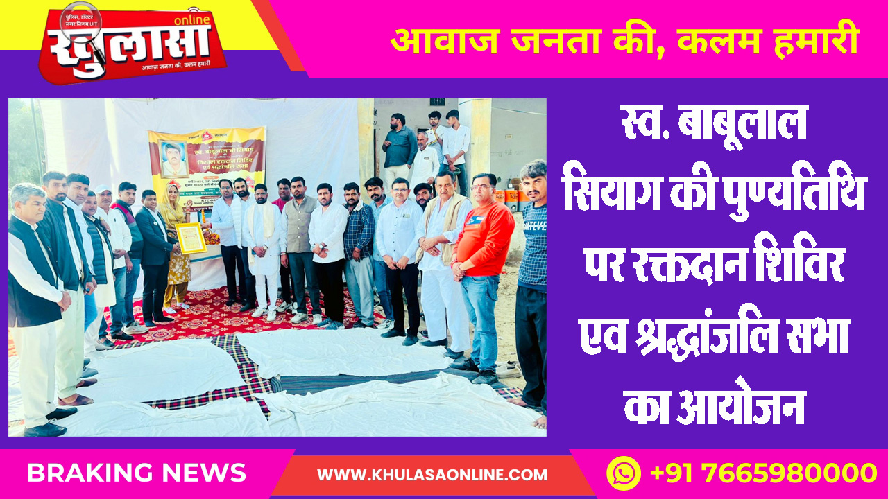 स्व. बाबूलाल सियाग की पुण्यतिथि पर रक्तदान शिविर एव श्रद्धांजलि सभा का आयोजन