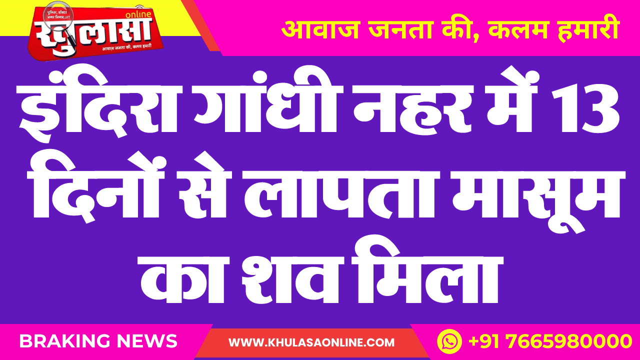 इंदिरा गांधी नहर में 13 दिनों से लापता मासूम का शव मिला