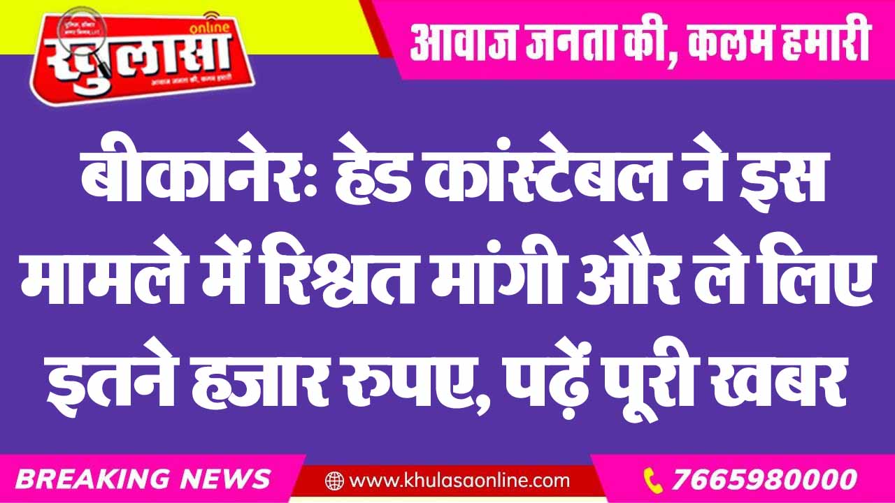 बीकानेर: हेड कांस्टेबल ने इस मामले में रिश्वत मांगी और ले लिए इतने हजार रुपए, पढ़ें पूरी खबर