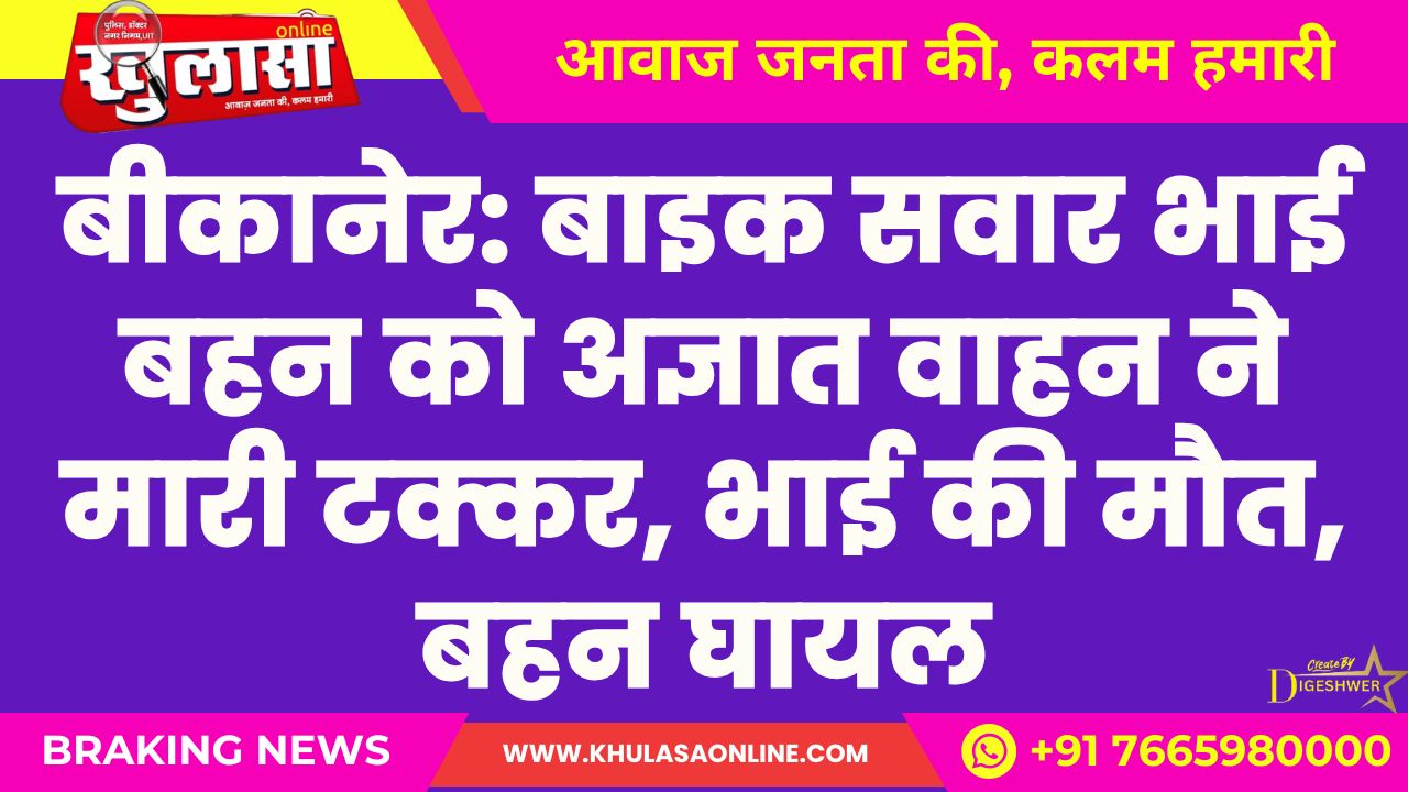 बीकानेर: बाइक सवार भाई बहन को अज्ञात वाहन ने मारी टक्कर, भाई की मौत, बहन घायल