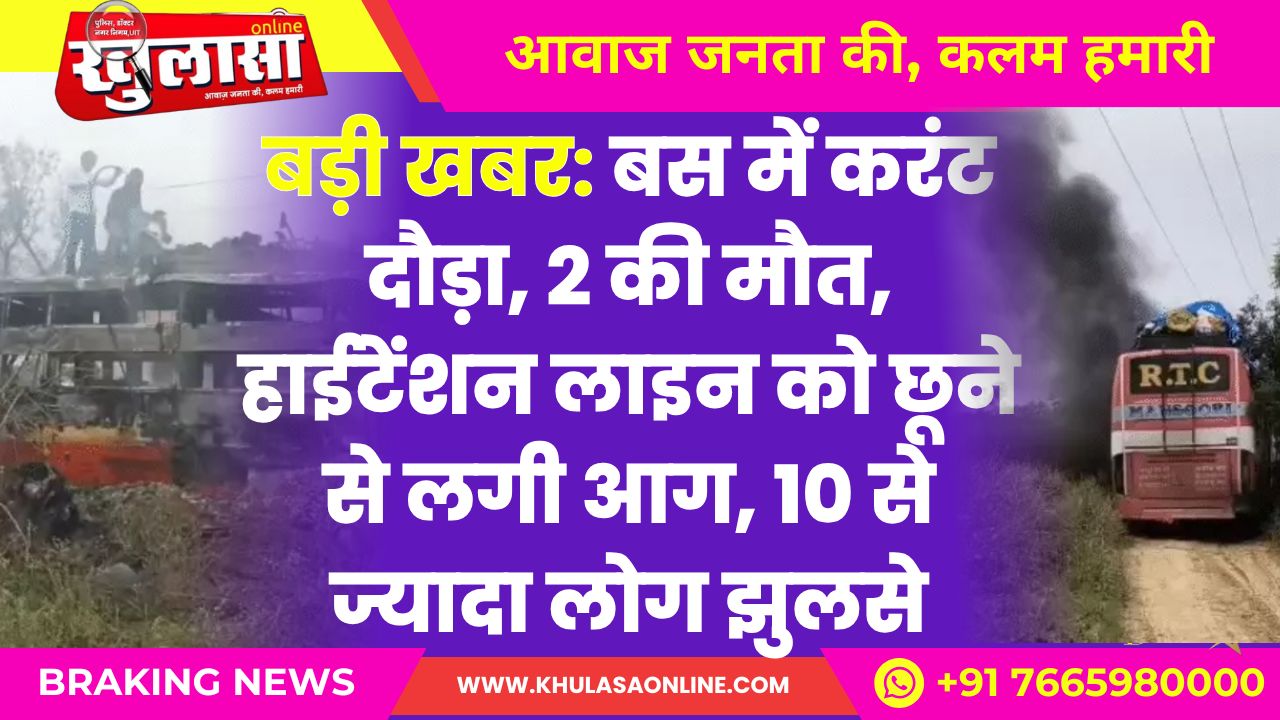 बड़ी खबर: बस में करंट दौड़ा, 2 की मौत, हाईटेंशन लाइन को छूने से लगी आग, 10 से ज्यादा लोग झुलसे