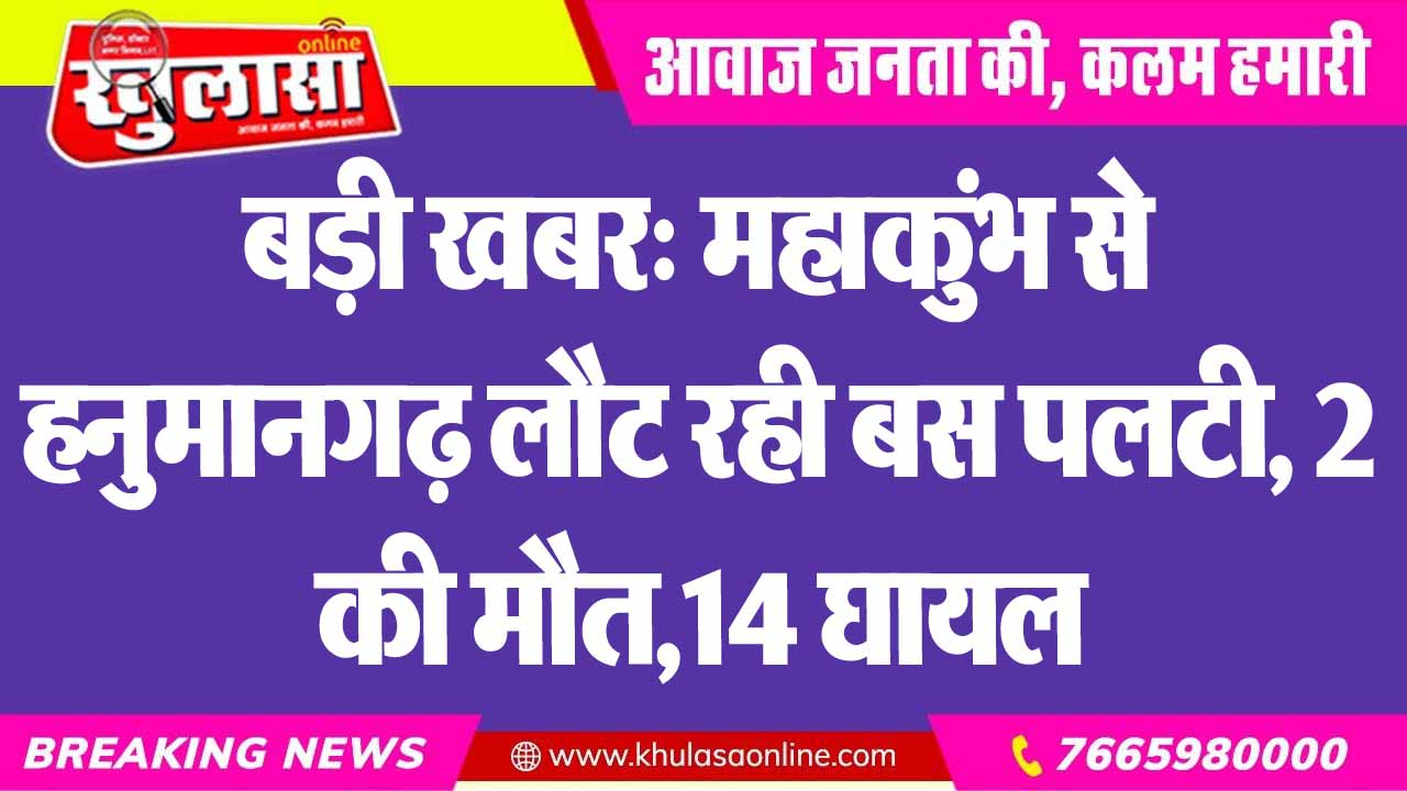 बड़ी खबर: महाकुंभ से हनुमानगढ़ लौट रही बस पलटी, 2 की मौत,14 घायल