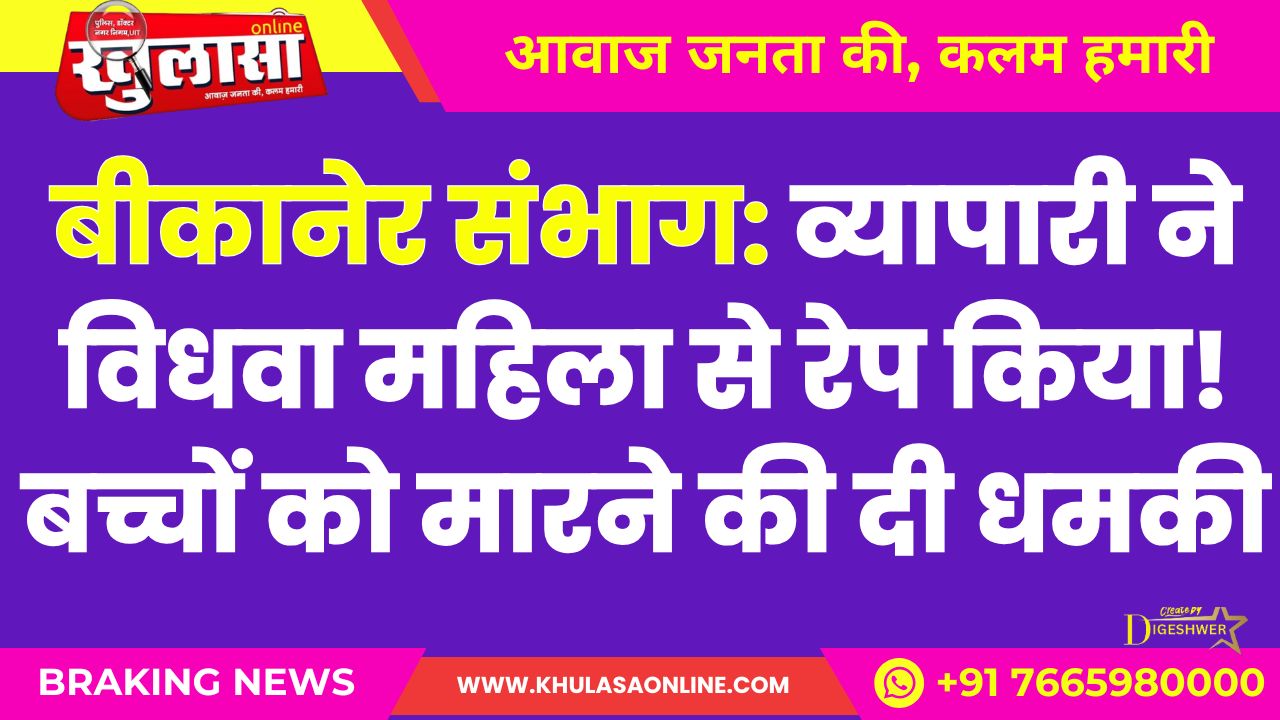 बीकानेर संभाग: व्यापारी ने विधवा महिला से रेप किया, बच्चों को मारने की दी धमकी