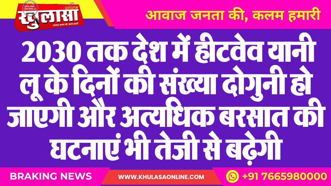 2030 तक देश में हीटवेव यानी लू के दिनों की संख्या दोगुनी हो जाएगी और अत्यधिक बरसात की घटनाएं भी तेजी से बढ़ेगी
