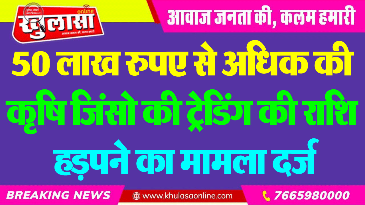 50 लाख रुपए से अधिक की कृषि जिंसो की ट्रेडिंग की राशि हड़पने का मामला दर्ज