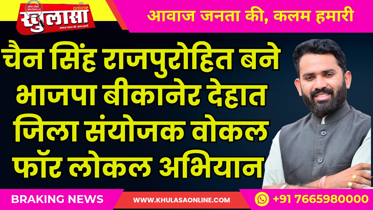 चैन सिंह राजपुरोहित बने भाजपा बीकानेर देहात जिला संयोजक वोकल फॉर लोकल अभियान