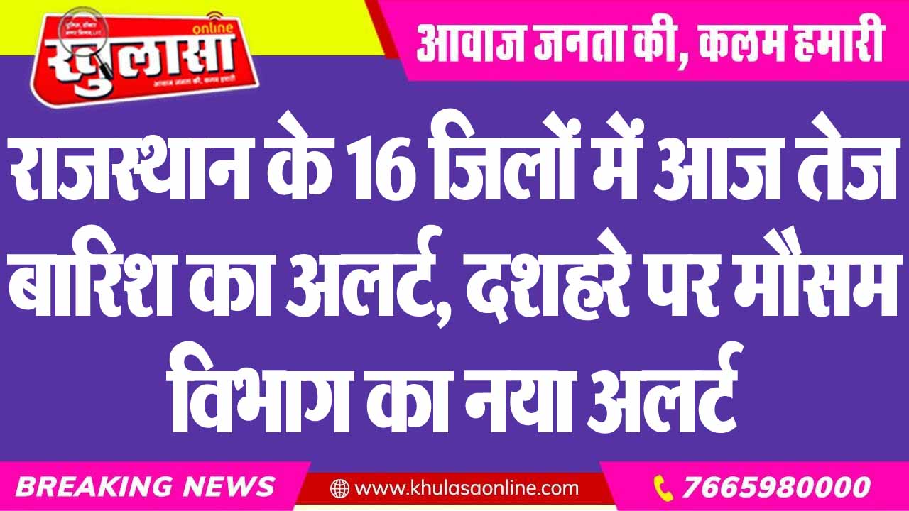 राजस्थान के 16 जिलों में आज तेज बारिश का अलर्ट, दशहरे पर मौसम विभाग का नया अलर्ट