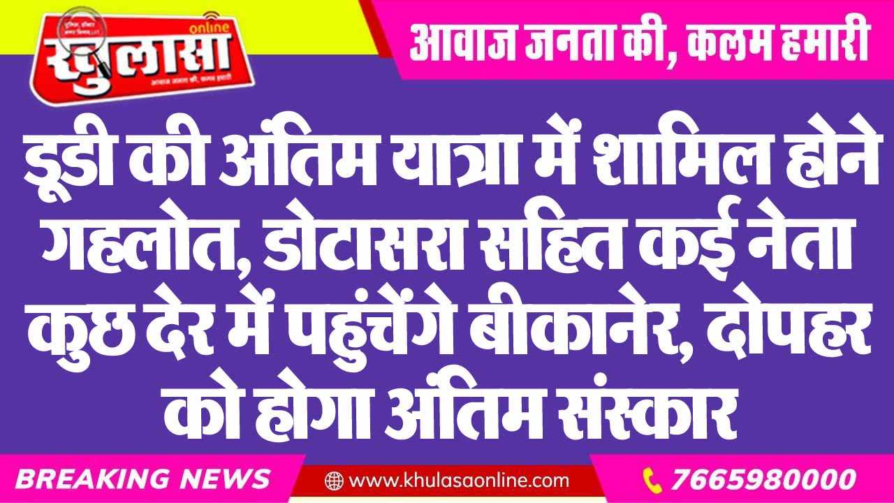 डूडी की अंतिम यात्रा में शामिल होने गहलोत, डोटासरा सहित कई नेता कुछ देर में पहुंचेंगे बीकानेर, दोपहर को होगा अंतिम संस्कार