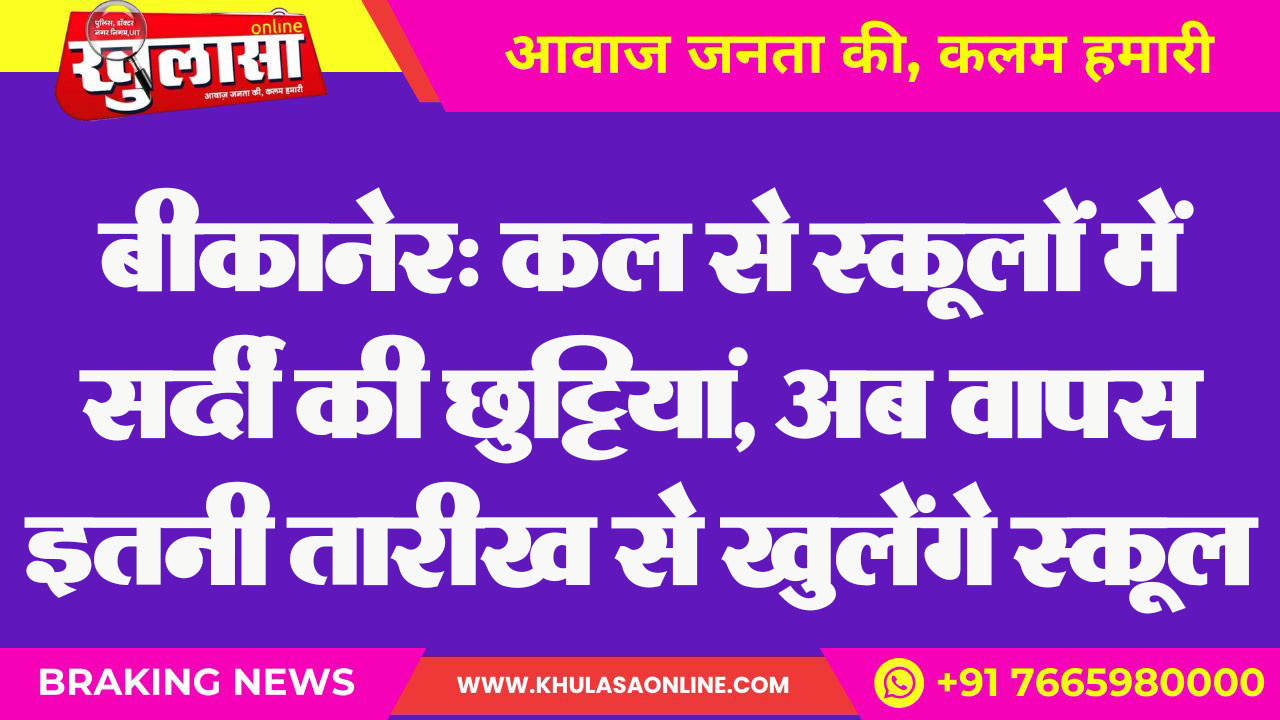 बीकानेर: कल से स्कूलों में सर्दी की छुट्टियां, अब वापस इतनी तारीख से खुलेंगे स्कूल