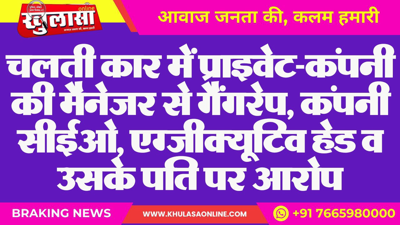 चलती कार में प्राइवेट-कंपनी की मैनेजर से गैंगरेप, कंपनी सीईओ, एग्जीक्यूटिव हेड व उसके पति पर आरोप