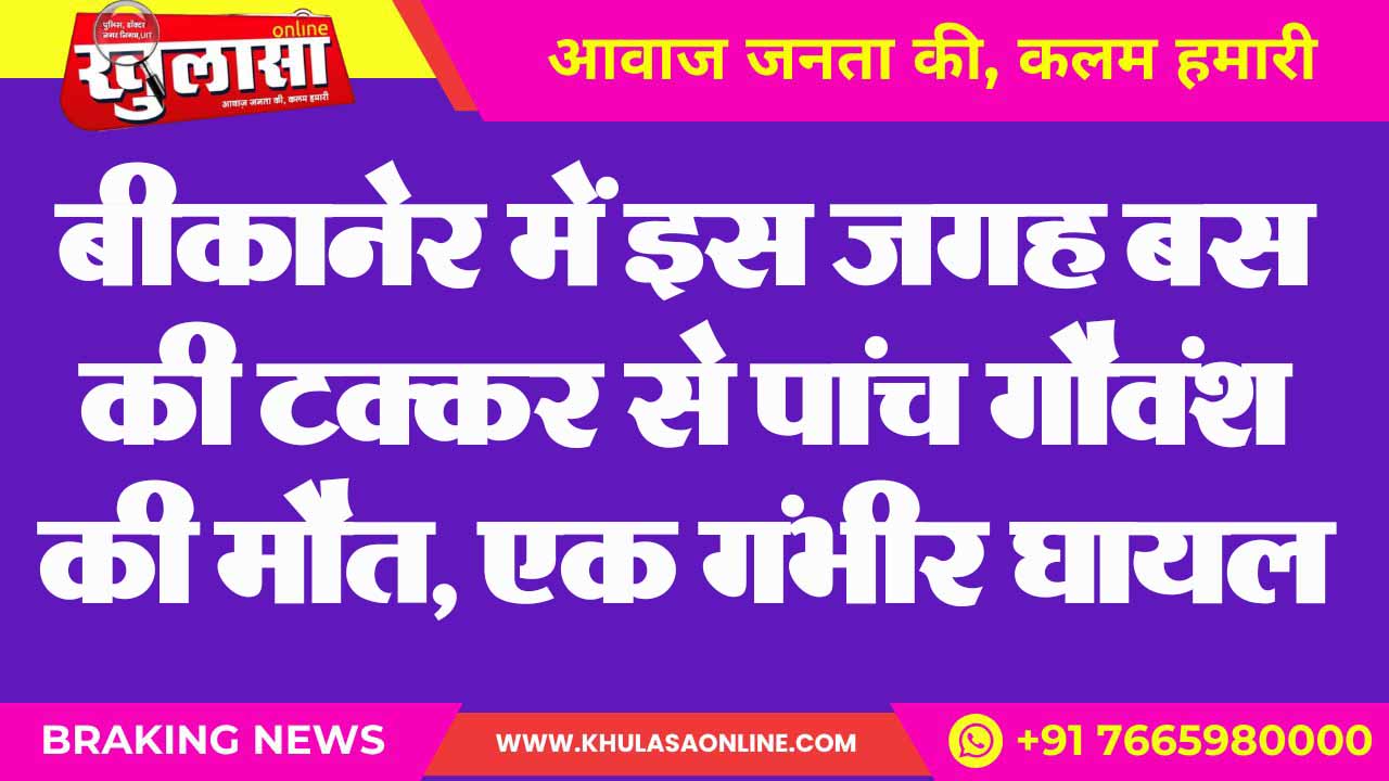 बीकानेर में इस जगह बस की टक्कर से पांच गौवंश की मौत, एक गंभीर घायल