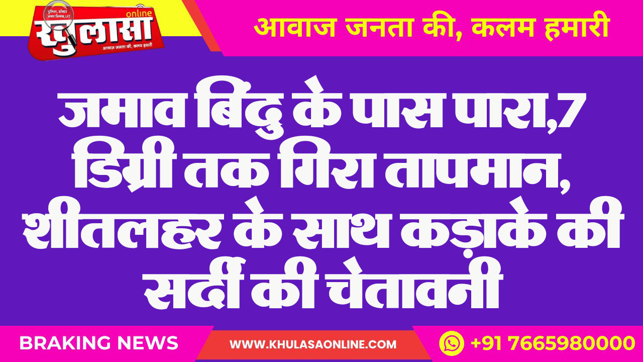 जमाव बिंदु के पास पारा,7 डिग्री तक गिरा तापमान, शीतलहर के साथ कड़ाके की सर्दी की चेतावनी