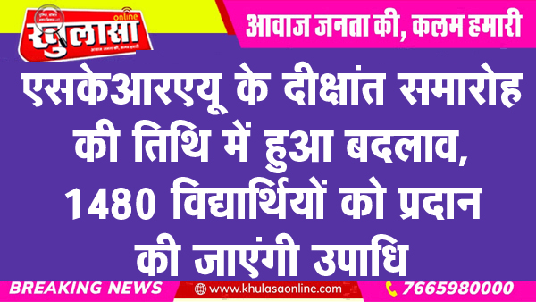 एसकेआरएयू के दीक्षांत समारोह की तिथि में हुआ बदलाव, 1480 विद्यार्थियों को प्रदान की जाएंगी उपाधि