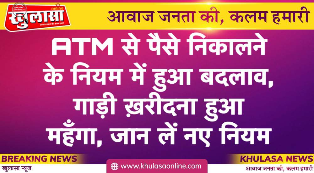 ATM से पैसे निकालने के नियम में हुआ बदलाव, गाड़ी ख़रीदना हुआ महँगा, जान लें नए नियम