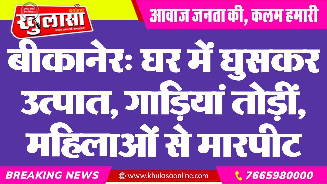 बीकानेर: घर में घुसकर उत्पात, गाड़ियां तोड़ीं, महिलाओं से मारपीट