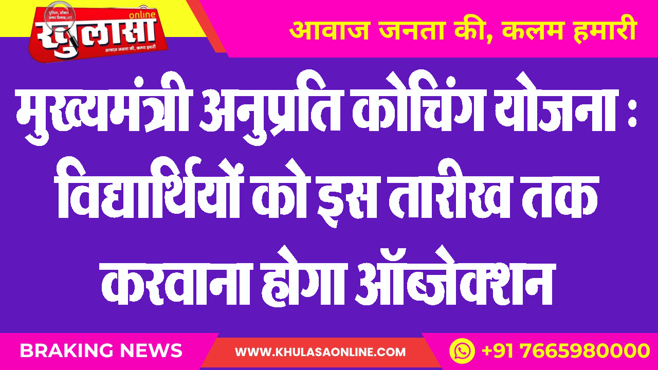 मुख्यमंत्री अनुप्रति कोचिंग योजना : विद्यार्थियों को इस तारीख तक करवाना होगा ऑब्जेक्शन