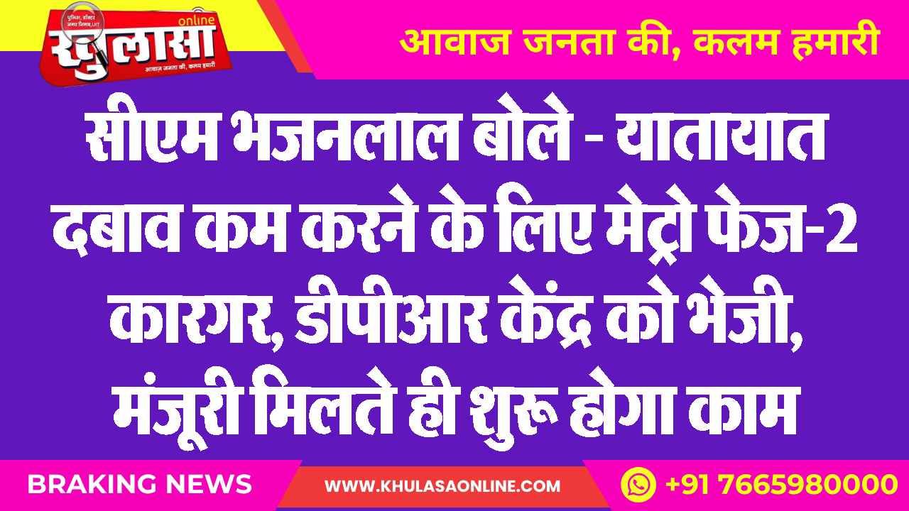 सीएम भजनलाल बोले – यातायात दबाव कम करने के लिए मेट्रो फेज-2 कारगर, डीपीआर केंद्र को भेजी, मंजूरी मिलते ही शुरू होगा काम