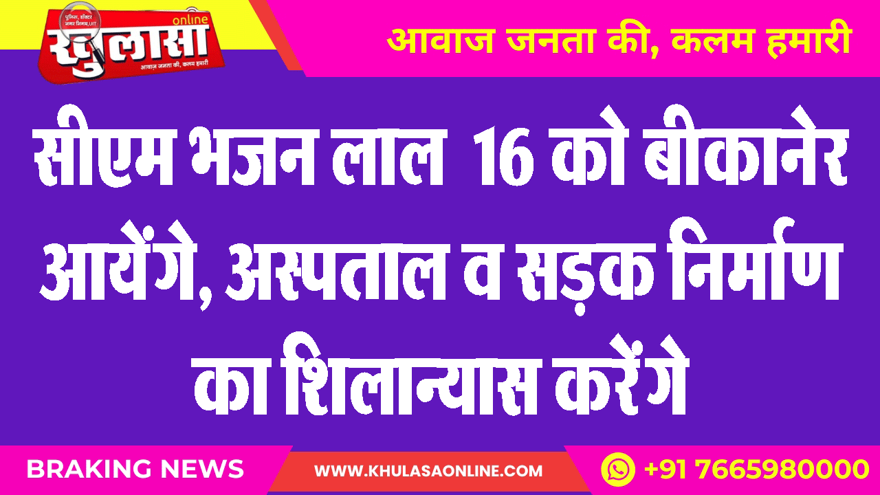 सीएम भजन लाल 16 को बीकानेर आयेंगे, अस्पताल व सडक़ निर्माण का शिलान्यास करेंगे