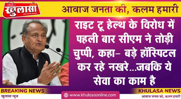 खुलासा न्यूज। राजस्थान सरकार राइट टू हेल्थ बिल लेकर आ रही है। इससे पहले प्रदेश के बड़े निजी अस्पताल और डॉक्टर्स ने इसका विरोध शुरू कर दिया था। कुछ दिनों पहले प्रदेश के सरकारी हॉस्पिटल में ओपीडी भी बंद रखी। इधर, सरकार से बातचीत का दौर चला, लेकिन वार्ता विफल हुई। इस बीच, सीएम अशोक गहलोत ने पहली बार इस बिल के विरोध में चुप्पी तोड़ते हुए बड़े हॉस्पिटल्स को लेकर निशाना साधा। प्राइवेट हॉस्पिटल की ओर से किए जा रहे विरोध पर उन्होंने कहा- बड़े हॉस्पिटल इस बिल को लेकर नखरे कर रहे हैं। उनको ऐसा नहीं करना चाहिए क्योंकि वह पैसा कमाते हैं, जबकि ये सेवा का काम है। दरअसल, गहलोत तीन दिनों से जोधपुर के दौरे पर हैं। वह सोमवार को पाली रोड स्थित व्यास मेडिसिटी के लोकार्पण समारोह में हिस्सा लेने पहुंचे। समारोह में उन्होंने राइट टू हेल्थ बिल का विरोध कर रहे डॉक्टर्स और हॉस्पिटल्स पर निशाना साधा।