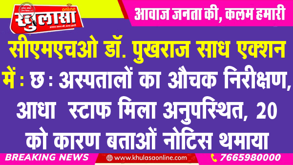 सीएमएचओ डॉ. पुखराज साध एक्शन में : छ: अस्पतालों का औचक निरीक्षण, आधा स्टाफ मिला अनुपस्थित, 20 को कारण बताओं नोटिस थमाया