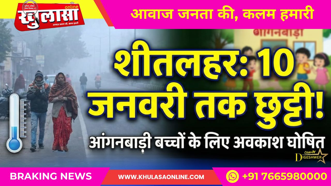 शीतलहर का प्रकोप: जिला कलेक्टर ने जारी किए आदेश, दस जनवरी तक बच्चों के लिए अवकाश घोषित
