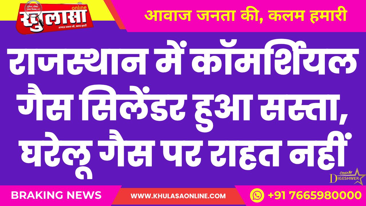 राजस्थान में कॉमर्शियल गैस सिलेंडर हुआ सस्ता, घरेलू गैस पर राहत नहीं